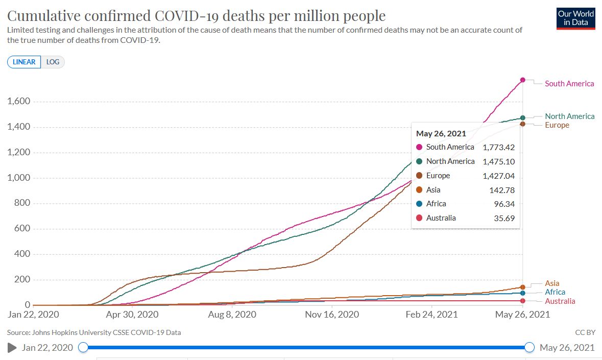 Es ist vollkommen klar, dass hier unzählige "unlautere" oder auch andere Einflüsse und Faktoren eine Rolle spielen. Das geht schon mit der Unzuverlässigkeit der Testverfahren und der mehr als zweifelhaften Definition der Sterbefälle los. Ich bin sicher, dass die Zahlen oft künstlich nach oben gebracht wurden. Und kann mir sehr gut vorstellen, dass hier und da auch "nachgeholfen" wurde auf die eine oder andere Weise. Man könnte da lange drüber reden. Was auch eine Rolle spielt, ist, dass in weiten Teilen Afrikas und Asiens die Menschen völlig anders damit umgehen und die Zahlen allein dadurch viel niedriger sind.lovetrail hat geschrieben: ↑Fr 28. Mai 2021, 08:07 Die Frage ist für mich, ob man mit diesen offiziellen Zahlen überhaupt seriös arbeiten kann, denn es wurden mittlerweile soviele Fälle von statistischem Betrug entlarvt (Leute werden fälschlich als Corona-Tote angegeben, Patienten werden falsch behandelt, PCR-Tests sind wertlos...), dass die Aussagekraft dann doch eher gering ist.