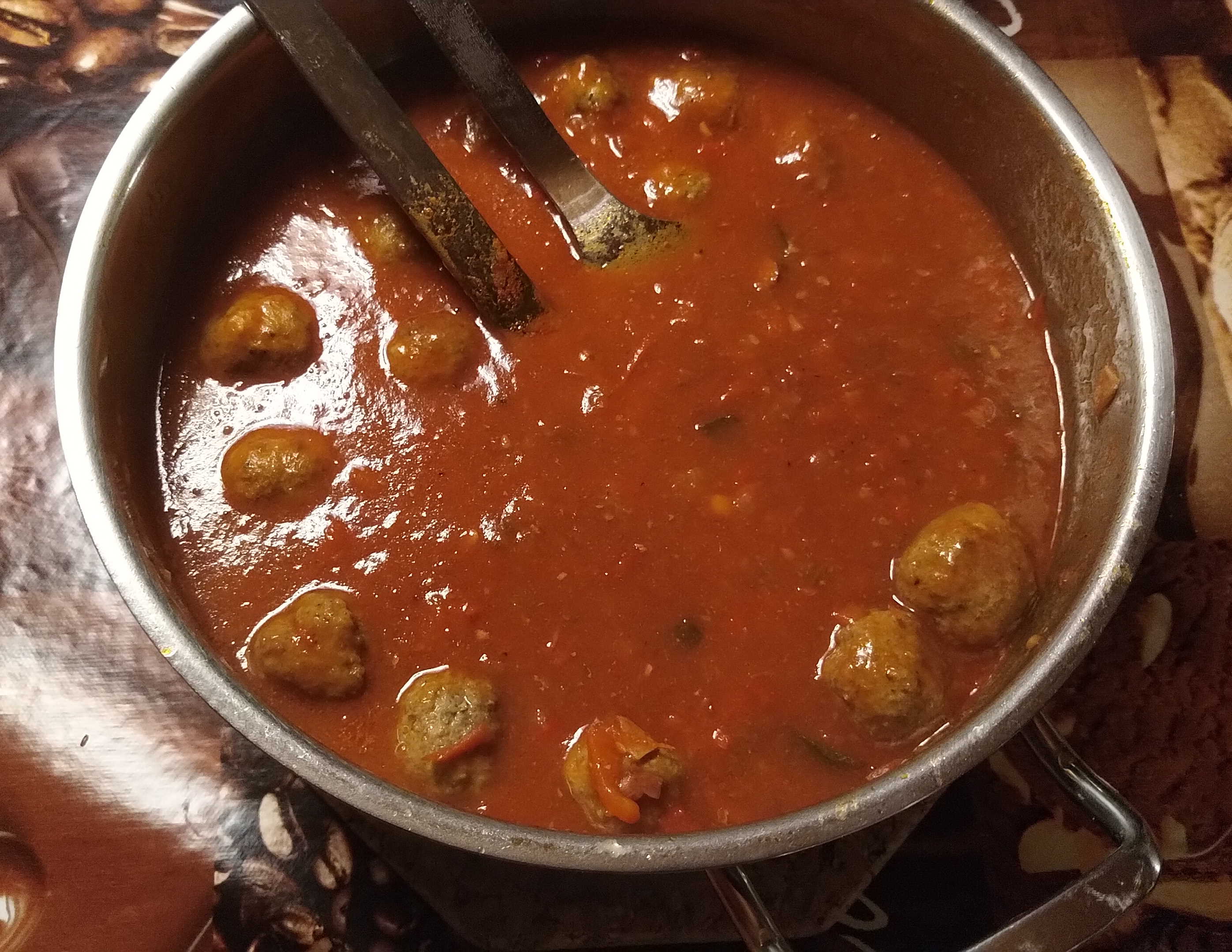 Vor einiger Zeit gab es Fleischbällchen nach ungarischer Art mit Reis, Salat und als Nachspeise einen Käsekuchen.