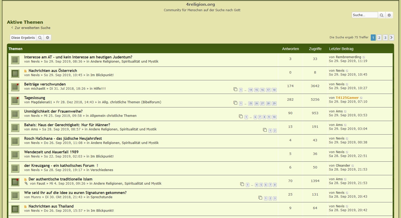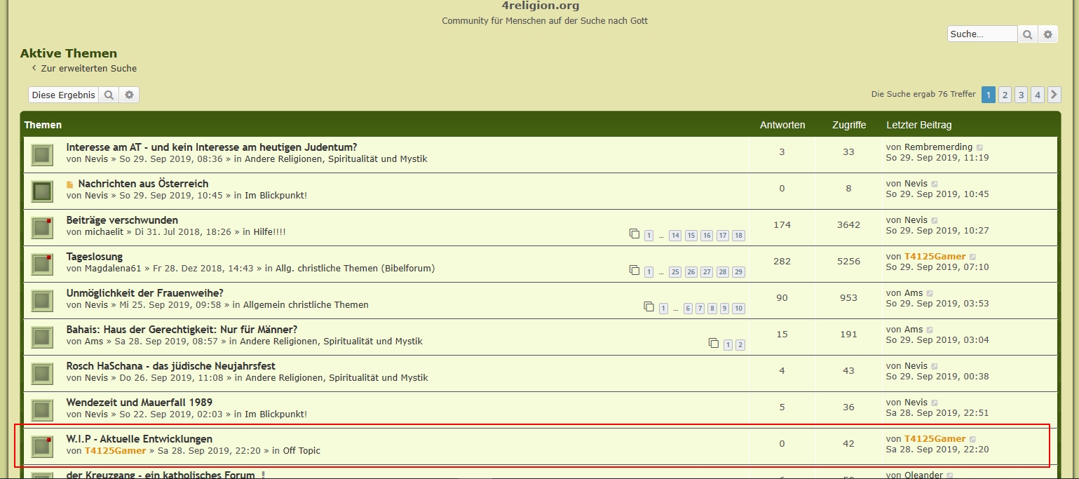 Zuvor wurde das Thema in den Aktiven Themen angezeigt.