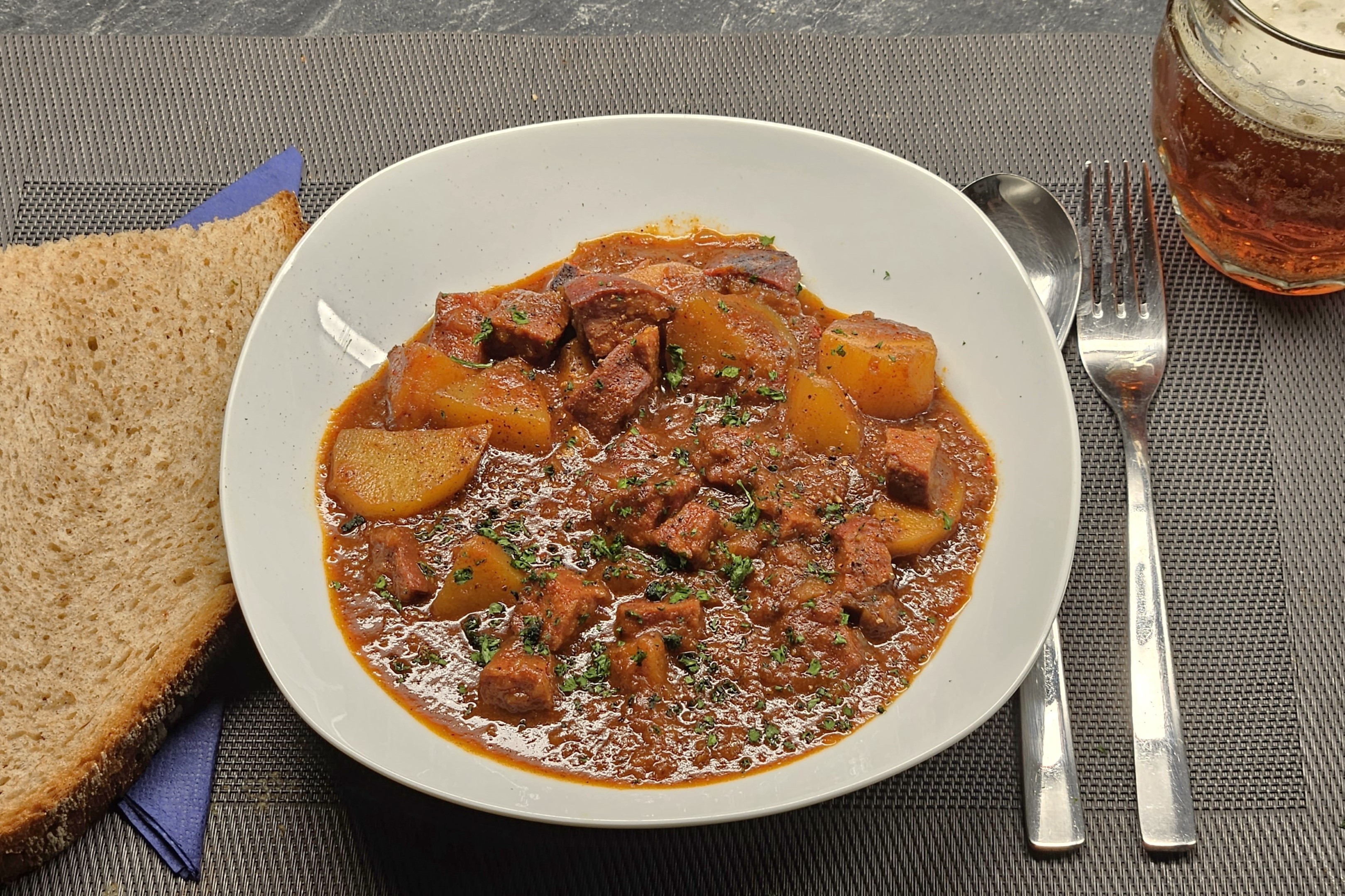 Dazu ein gutes Hausbrot vom Bäcker und a Seidl Bier - immer ein Genuss (auch am Sonntag)