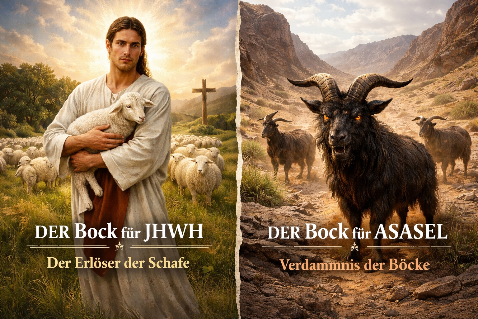 Asasel, der Ziegenbock, trägt die Schuld davon, zur Sühne in die Wüste, also weg vom Volk.